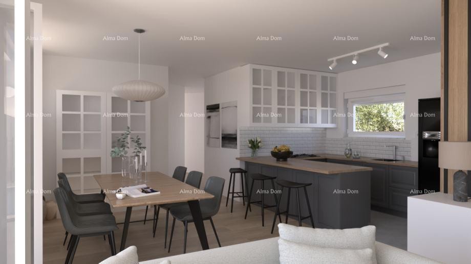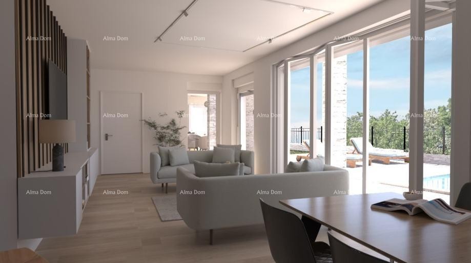 Moderne freistehende Bungalow mit Pool in Bau zu verkaufen, gelegen in einer ruhigen Siedlung in der Umgebung von Tinjan, Istrien. Die Lage ist ausgezeichnet – nur 10 km von Pazin, 20 km von Poreč und in unmittelbarer Nähe zur Autobahnauffahrt.