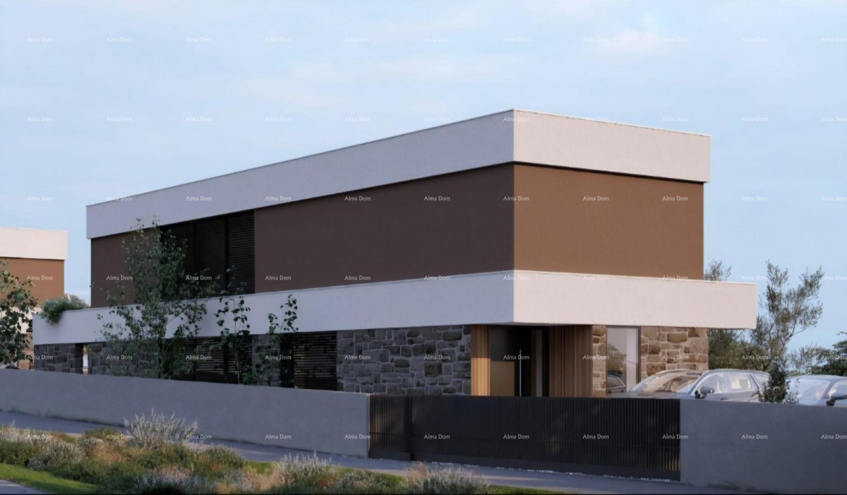 Das Haus hat ein modernes Design und einen funktionalen Grundriss: