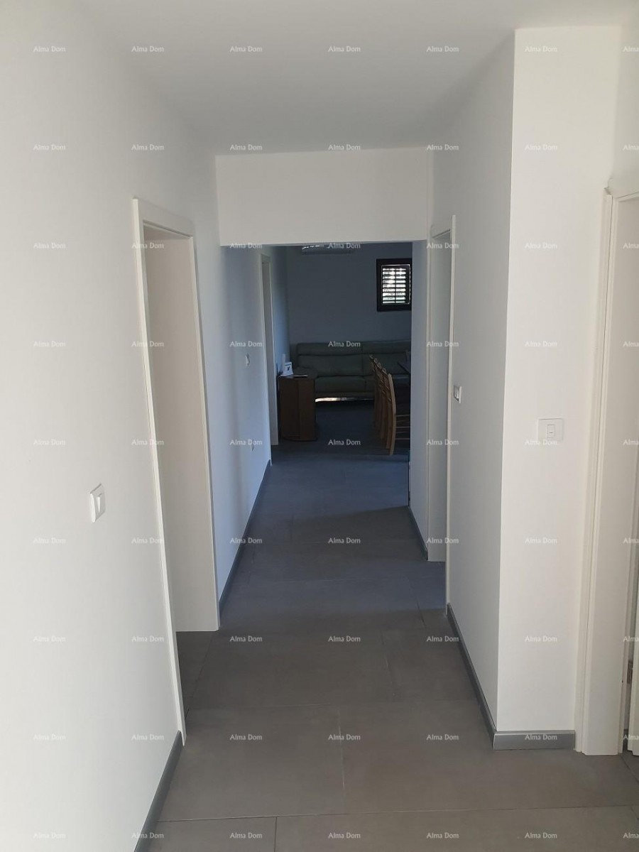 Im Erdgeschoss befindet sich eine Wohnung, die zwar nicht über eine Klimaanlage verfügt, jedoch mit einem Pelletofen zum Heizen ausgestattet ist und aus 3 Schlafzimmern, einem geräumigen Wohnzimmer und einem Badezimmer besteht.