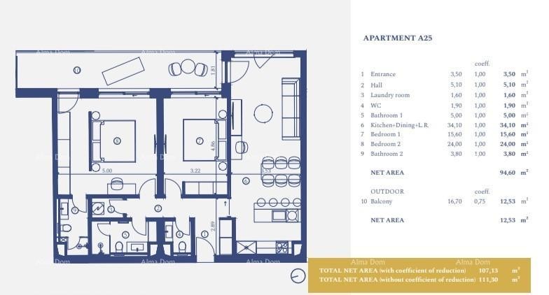 Wohnung A-25 (114,5 m2) befindet sich im 2. Stock: