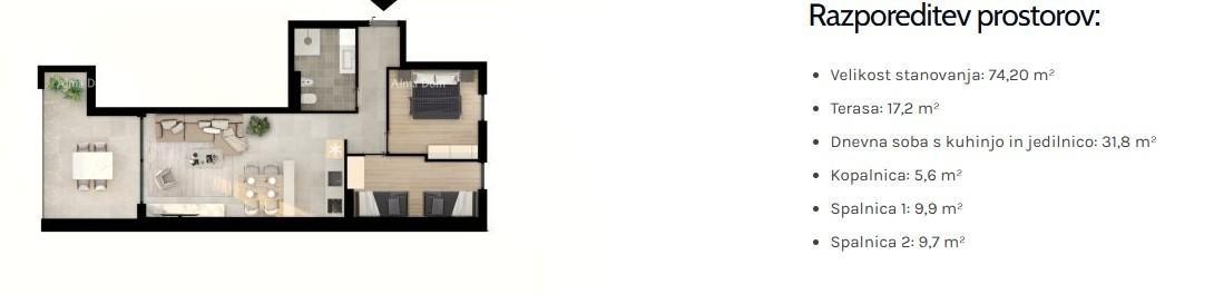 Die Wohnung S76 mit einer Gesamtfläche von 74,20 m² befindet sich im Erdgeschoss des Gebäudes und besteht aus:
