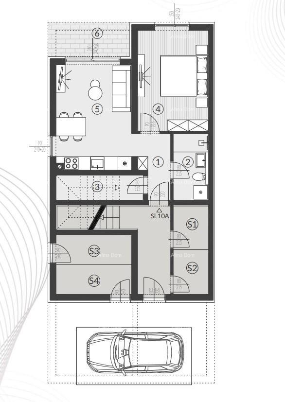 Jeder Wohneinheit sind die erforderliche Anzahl an Parkplätzen gemäß dem Bebauungsplan der Stadt Pula zugewiesen, mit den Dimensionen 2,50 m x 5,00 m. Jeder Parkplatz ist so geplant, dass er in Zukunft an das Stromnetz angeschlossen werden kann, um Ladestationen für Elektrofahrzeuge zu ermöglichen.
