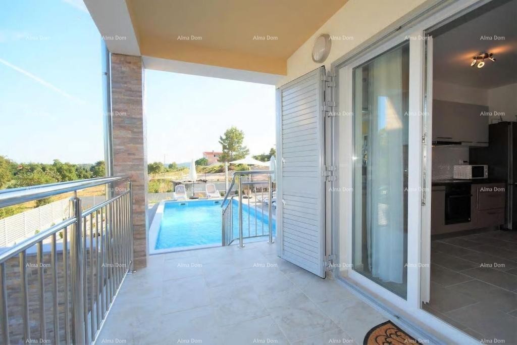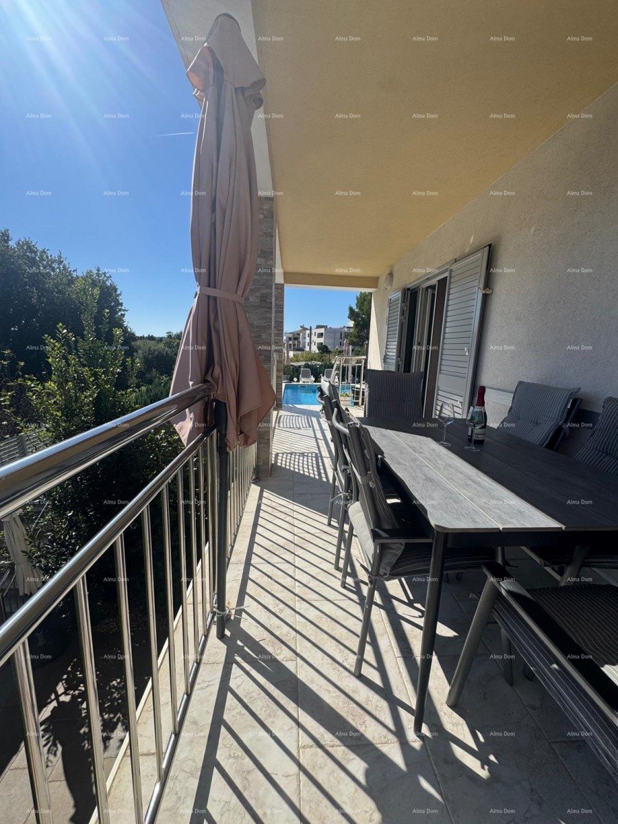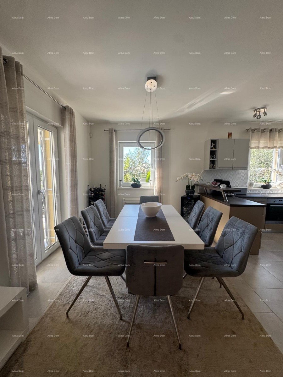Zum Verkauf steht ein wunderschönes Haus mit Pool und großem, gepflegtem Garten, nur 250 Meter vom Meer und 1,5 Kilometer vom Zentrum Medulins entfernt. Die Immobilie erstreckt sich über ein Grundstück von 700 m² und bietet einen unvergesslichen Blick auf das Meer.