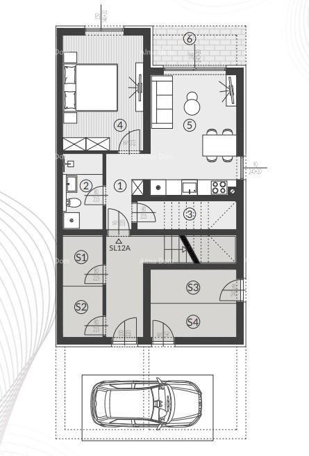 Jeder Wohneinheit sind die erforderliche Anzahl an Parkplätzen gemäß dem Bebauungsplan der Stadt Pula zugewiesen. Jeder Parkplatz ist für einen zukünftigen Anschluss an das Stromnetz vorgesehen, um Ladestationen für Elektrofahrzeuge zu ermöglichen.