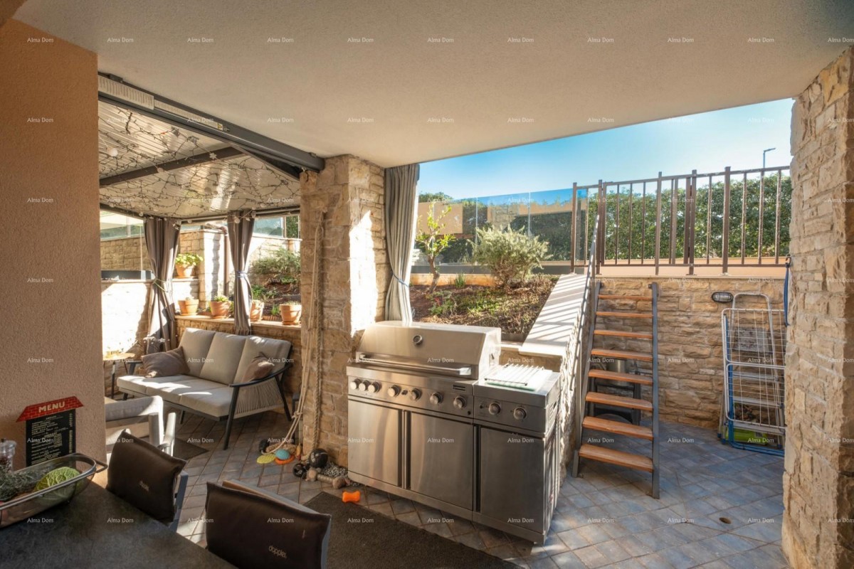Wohnung zum Verkauf in Medulin, gelegen im unteren Erdgeschoss (nur drei Wohnungen im Eingangsbereich), mit schöner überdachter Terrasse und Garten.