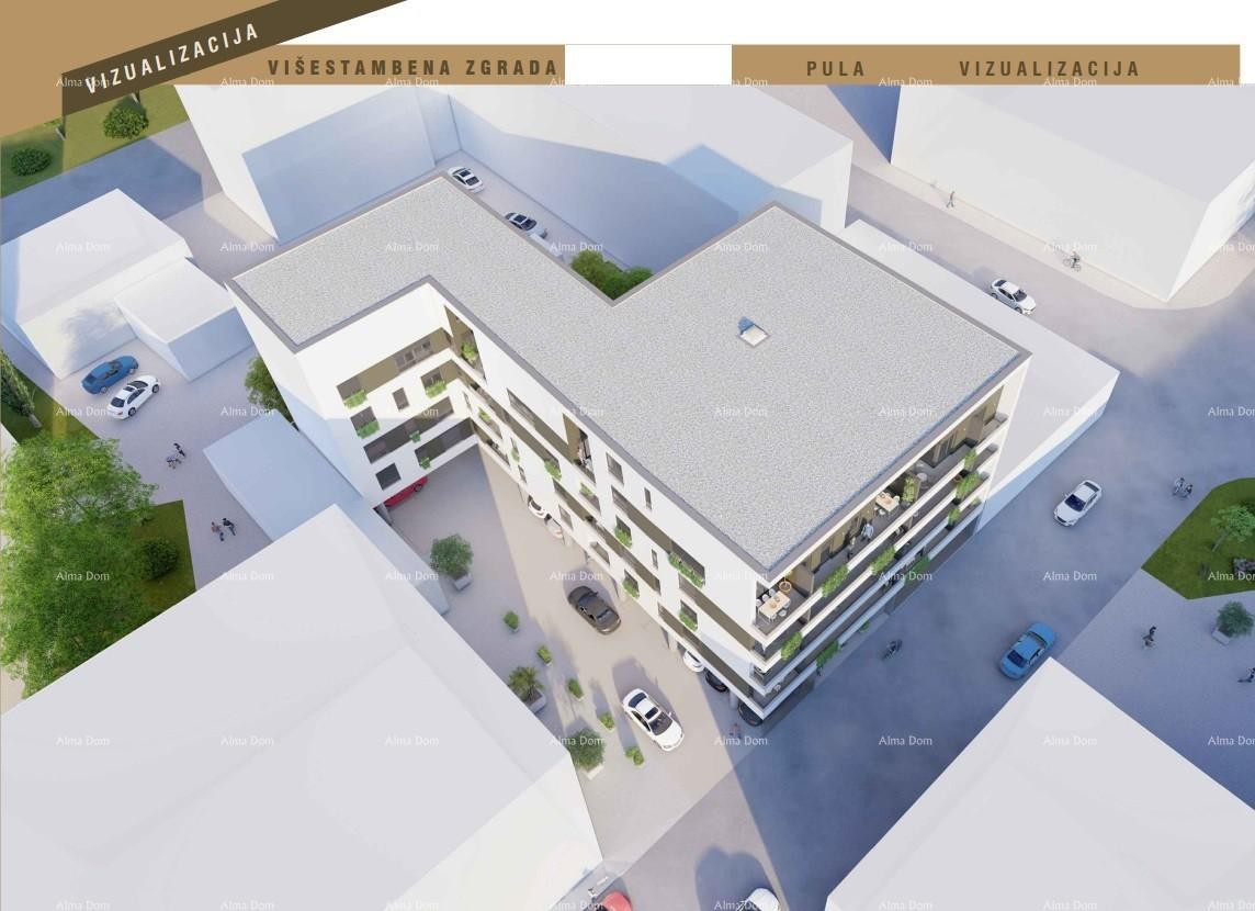 Im Erdgeschoss des Gebäudes werden Parkplätze, Garagenplätze, Wohnungen unterschiedlicher Größe entstehen.