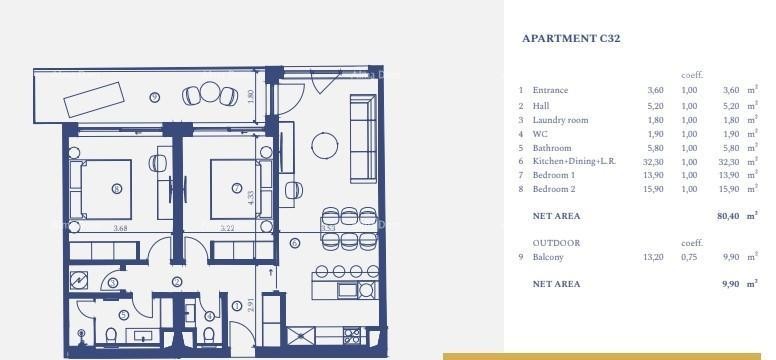Wohnung C-32 (93,6 m2) befindet sich im 2. Stock: