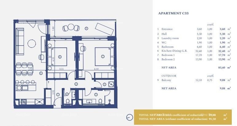 Die Wohnung C-33 (95,5 m2) befindet sich im 2. Stock: