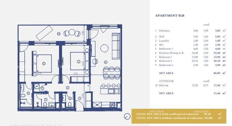 Die Wohnung B-28 (102 m2) befindet sich im 1. Stock: