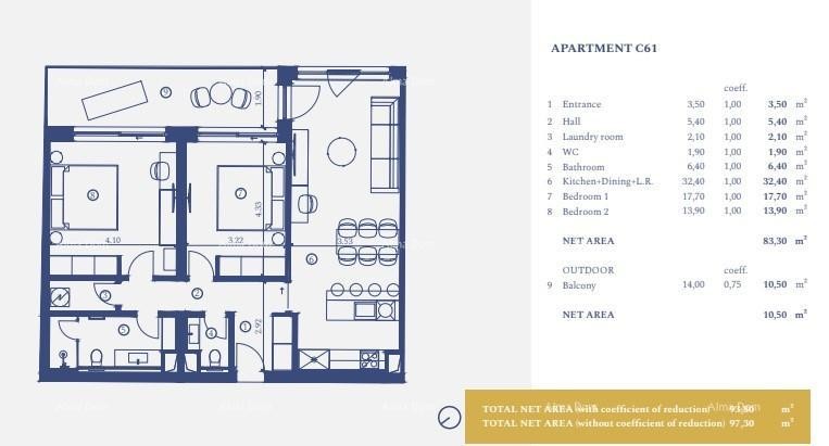 Die Wohnung C-61 (97,3 m2) befindet sich im 3. Stock: