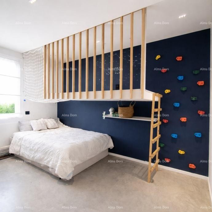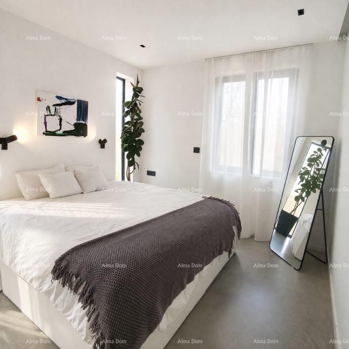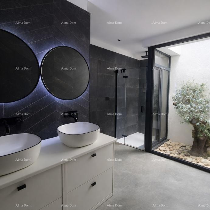 Zum Verkauf steht ein modern erbautes Erdgeschosshaus mit einer Wohnfläche von 143 m², das sich an einem äußerst ruhigen Standort befindet und dennoch in der Nähe der Altstadt von Labin liegt, die auch zu Fuß erreichbar ist.